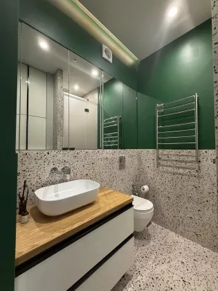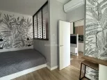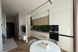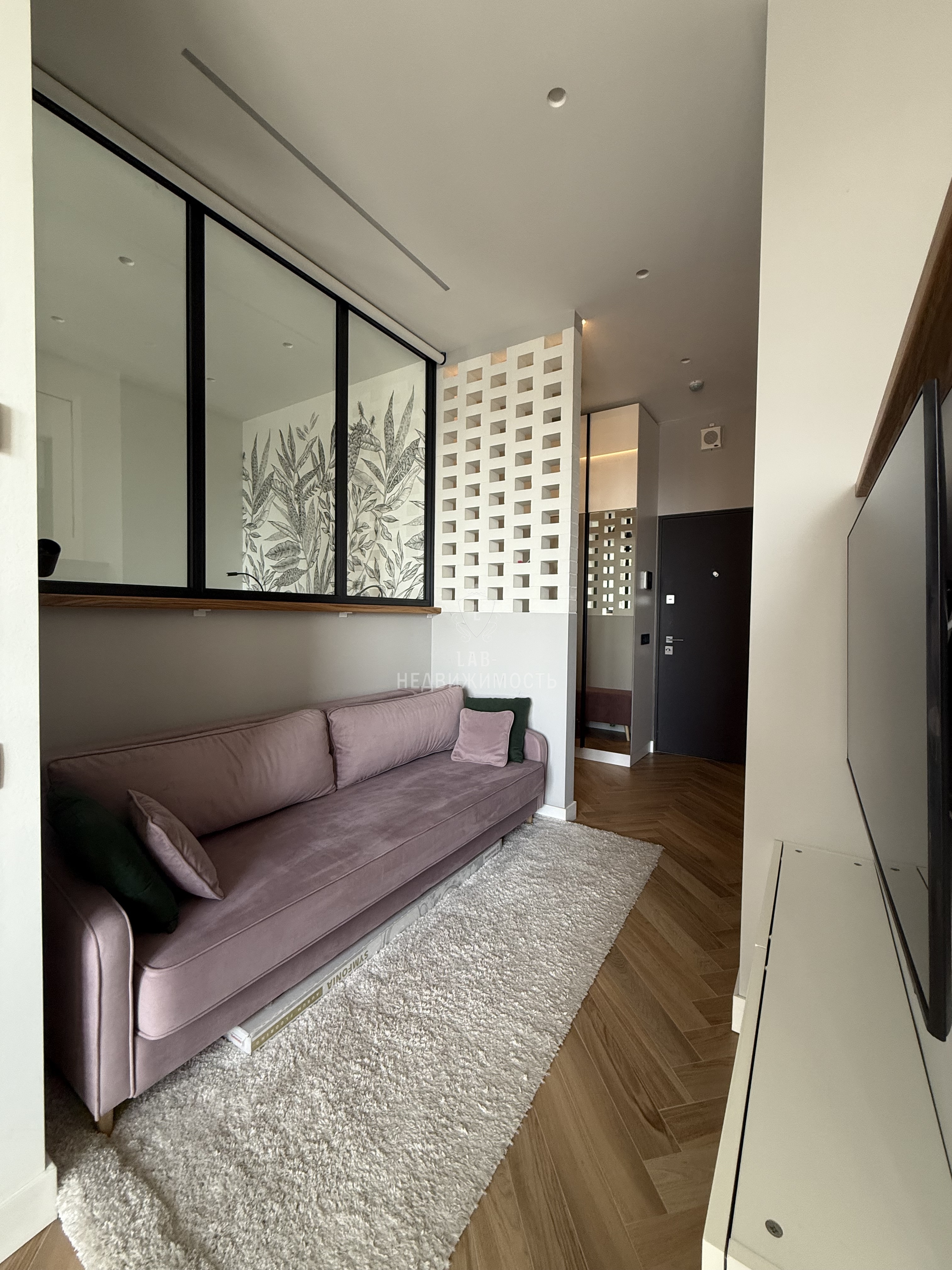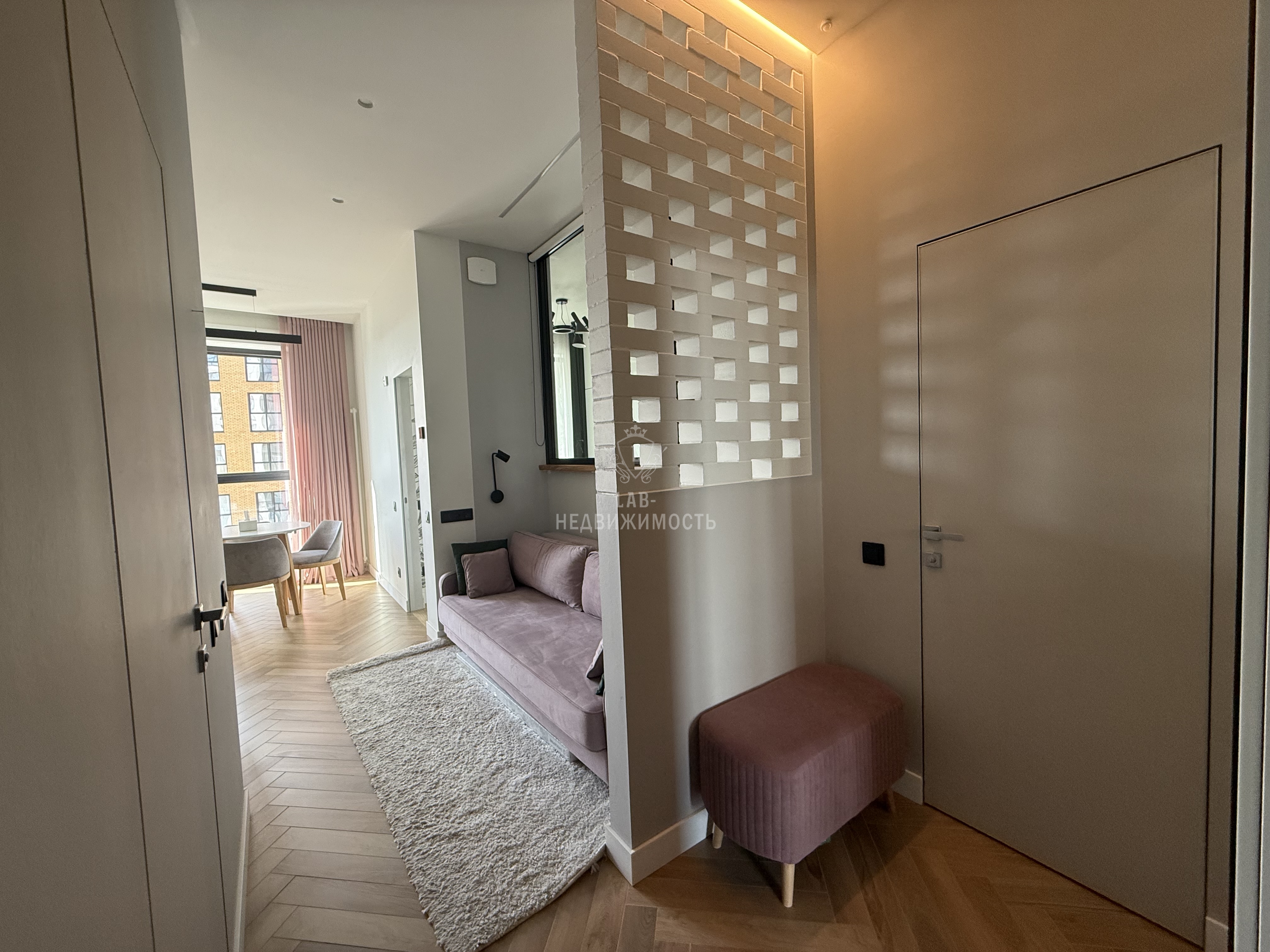 Общая площадь: 36,7 квадратных метра, сделан дизайнерский ремонт, система умный дом, теплый пол. Изолированная спальня с входном на лоджию с панорамным остеклением, есть рабочая зона и место для хранения вещей в спальне; также кухня -гостиная , где все продумано , есть вся необходимая мебель и техника для проживания , диван раскладной; предусмотрена вместительная гардеробная и есть шкаф в прихожей.