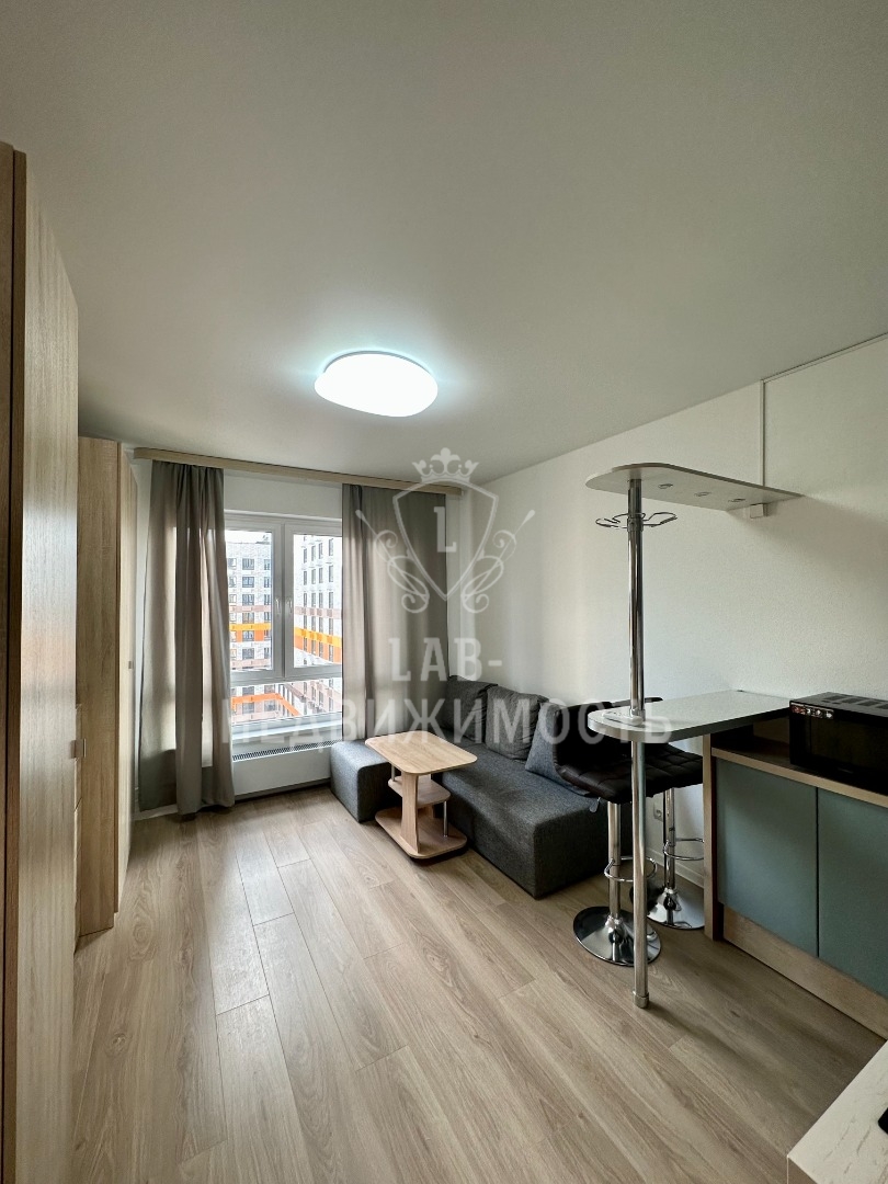 Сдается студия в ЖК Дмитровский парк, расположена по адресу: г. Москва, ул. Лобненская, д.13к3, на 14 этаже, 33 этажного дома. Общая площадь 19.6 кв.м., окна выходят во двор. В квартире есть вся необходимая мебель и техника ( кухонный гарнитур с встроенной варочной панелью, вытяжка, микроволновая печь, холодильник, телевизор, стиральная машина, очень много места для хранения вещей несмотря на небольшую площадь студии,раскладывающийся диван, установлена душевая кабина, кондиционер, wi-fi). Все совершенно новое, никто не проживал! Закрытая территория комплекса, ведется круглосуточное видеонаблюдение, двор без машин, в комплексе есть подземный паркинг.